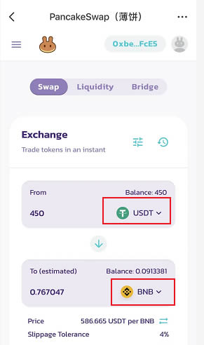 问:我用TP钱包BSC链,把usdt从币安转到BSC,怎么再换成BNB?