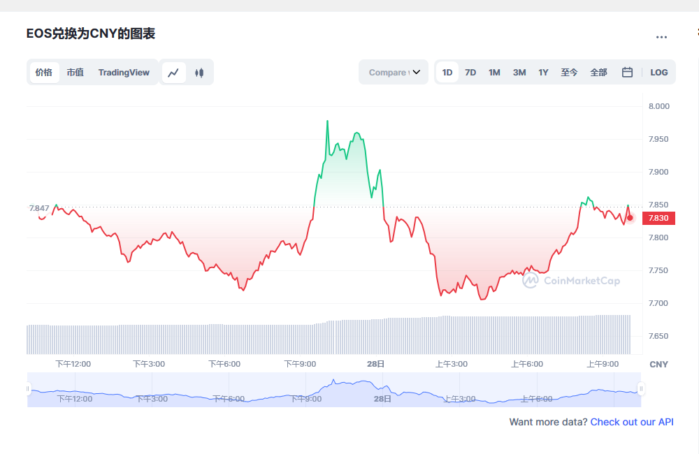 EOS 今日价格 为 ¥7.85 CNY,其 24 小时的交易量为 ¥832,453,914 CNY。 我们会实时更新EOS兑换为CNY的价格。 EOS 在过去 24 小时内增长了 0.53。 目前的 CoinMarketCap 排名为第 #44 位,其市值为 ¥8,490,809,071 CNY。 其流通供给量为 1,081,263,745 EOS 个货币 目前无法提供供给量上限信息。
