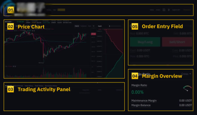 1.在该区域内,还可以找到访问其他页面的链接,包括币本位合约(季度合约)、API接入、现货和活动。在信息选项卡下,可以找到有关币安合约常见问题解答、资金费率、指数价格和其他市场数据的链接。在顶部栏右侧可以访问币安帐户,包括操作面板。您可以轻松查看钱包余额以及整个生态系统内的订单。