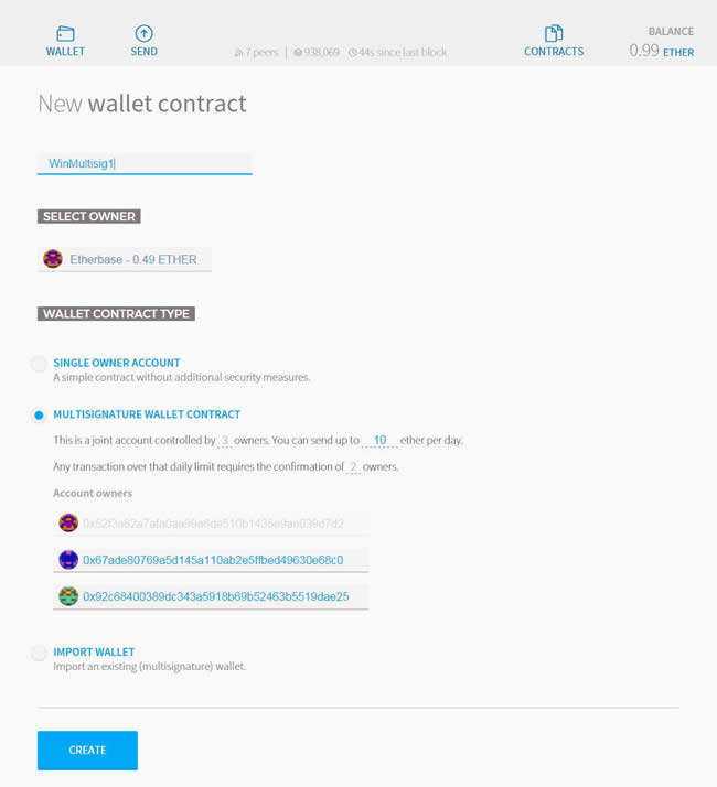当你选择 MULTISIGNATURE WALLET CONTRACT ,将会看到如下提示: